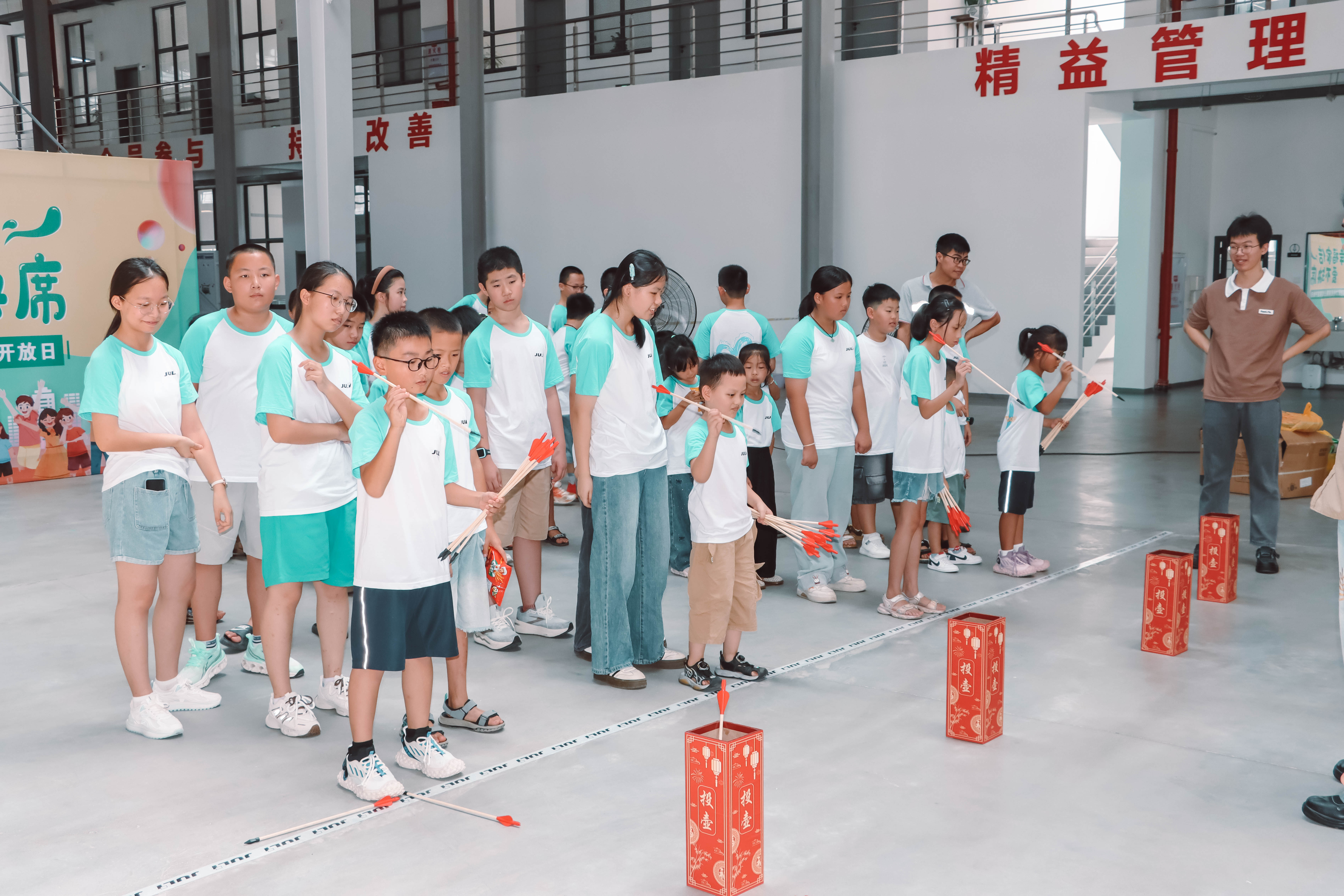 参观结束后,是轻松愉快的游戏互动时间。经典的套圈圈和投壶游戏吸引了孩子们踊跃参与,加油声、欢笑声此起彼伏,现场气氛热烈。游戏不仅带来了欢乐,也增进了小伙伴们之间的友谊。